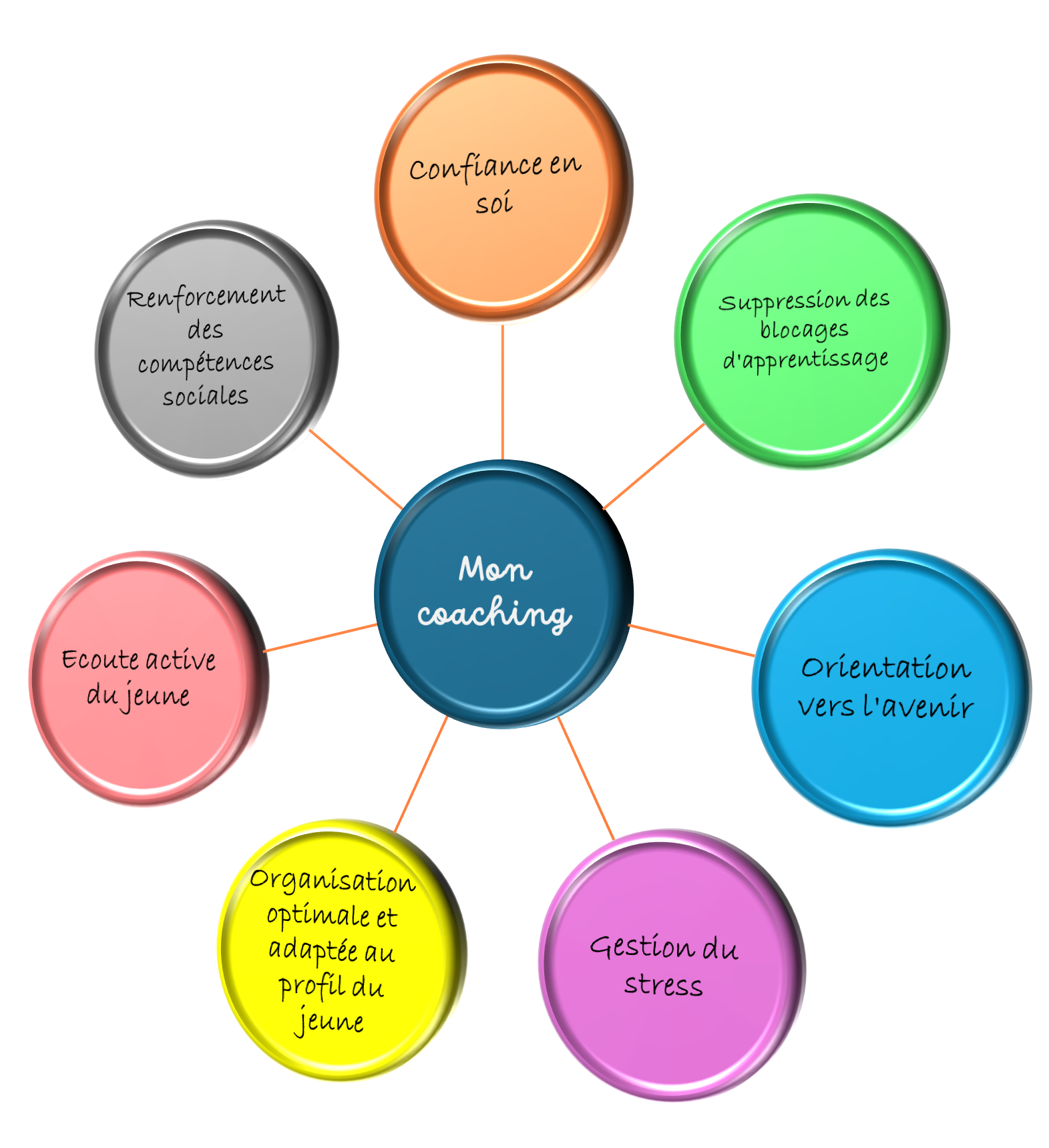 Ensemble nous définirons une méthode personnalisée pour surmonter ses difficultés, soutenir son évolution scolaire et renforcer ses rapports avec son entourage.